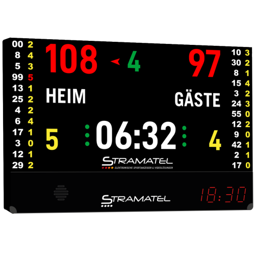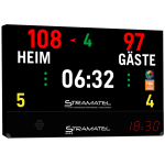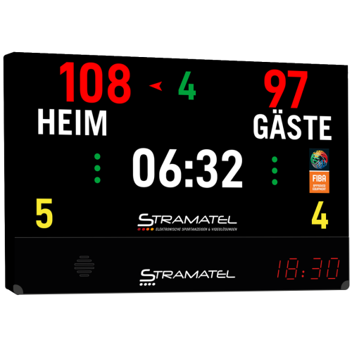 Sie besteht aus einem LED-Videobildschirm mit einem integrierten Anschluss, um eigene Medien in die Anzeigetafel zu laden. All dies wird dann über die FIBA-zertifizierte Stramatel-Bedienkonsole gesteuert.