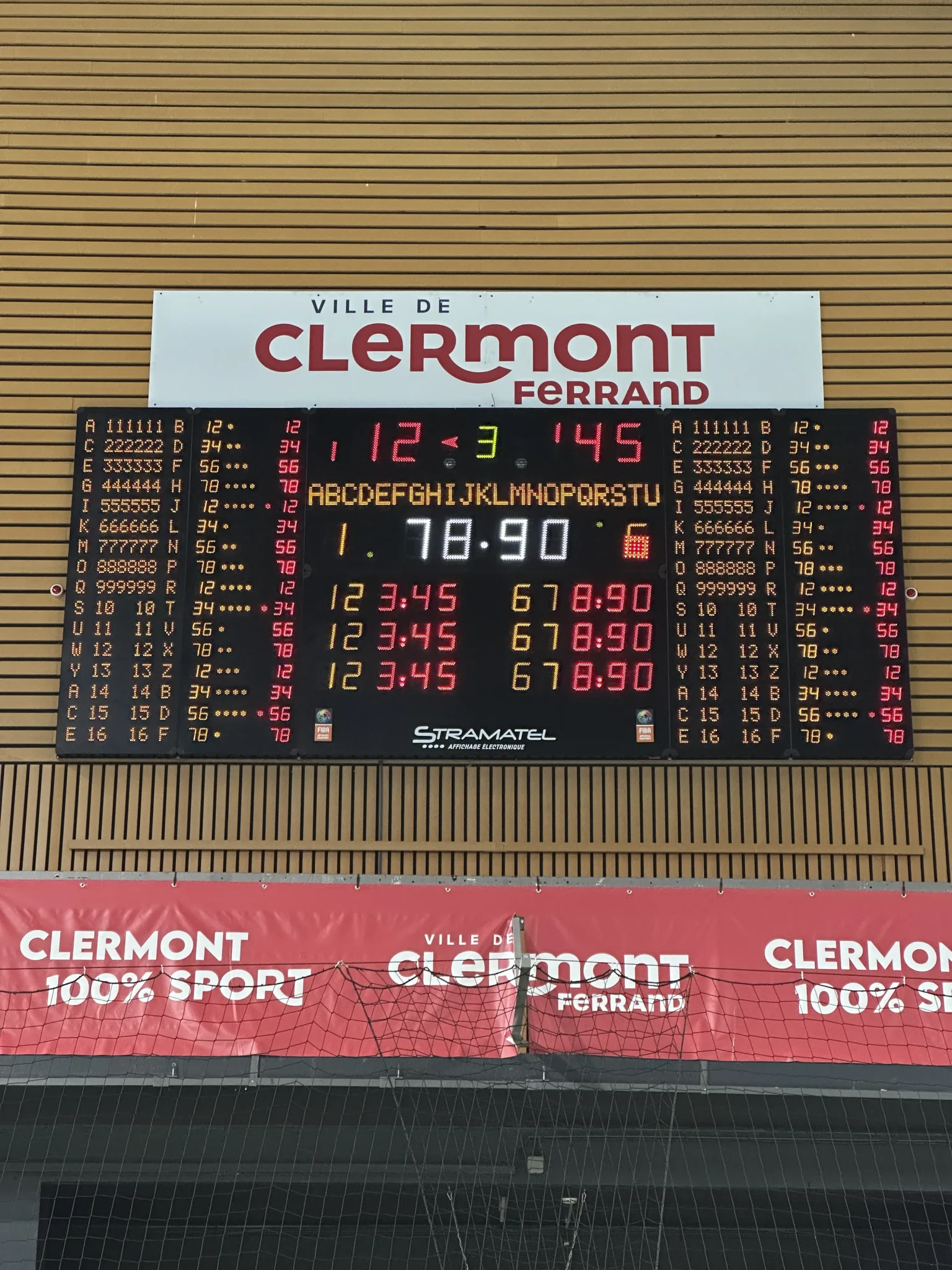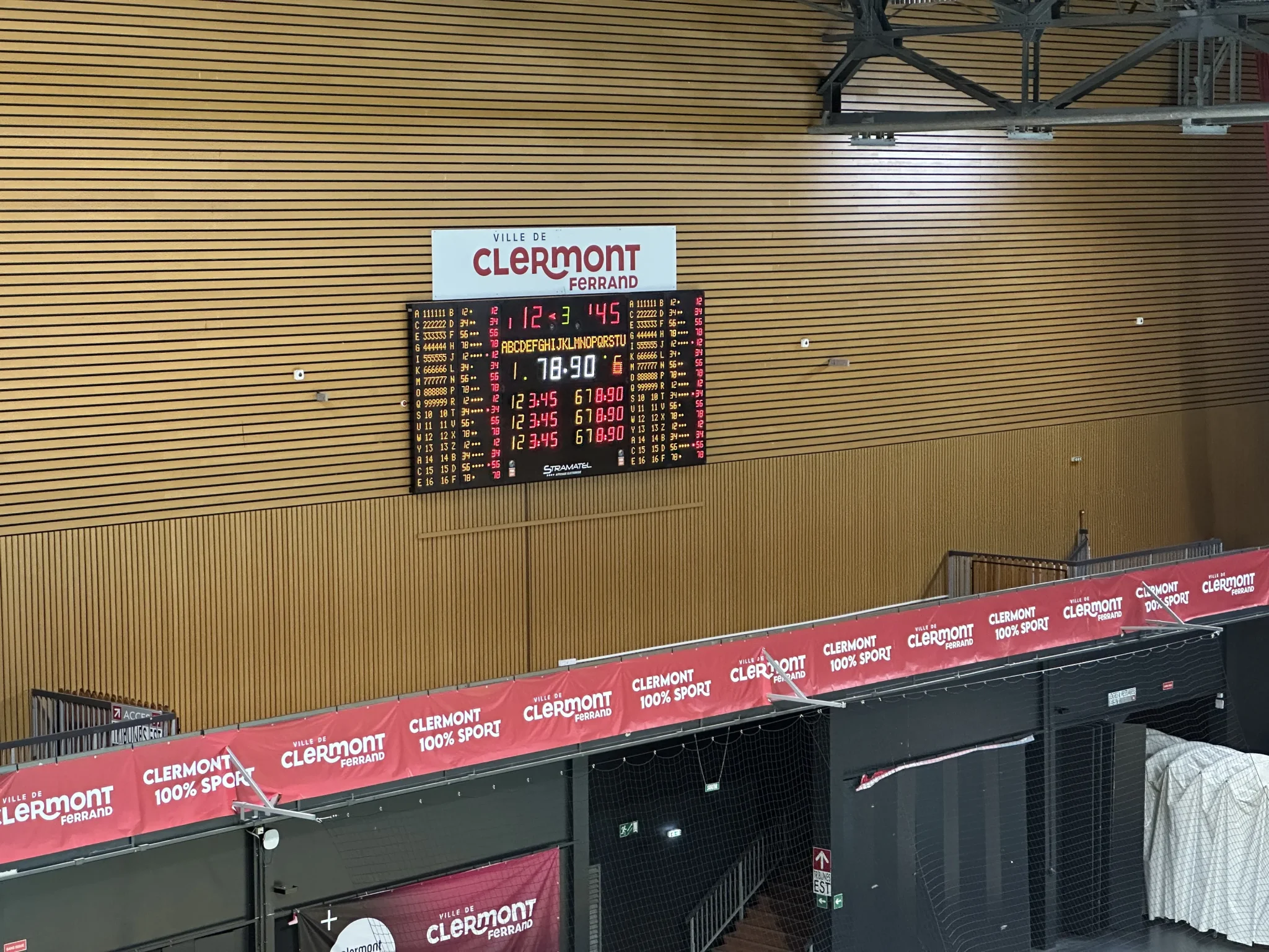 Affichage électronique sportif Stramatel MF3123-123 installé Maison Sports Clermont-Ferrand