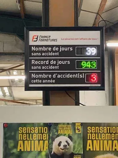 Afficheur nombre de jours sans accident chez France Fermetures : un engagement pour la prévention des accidents du travail