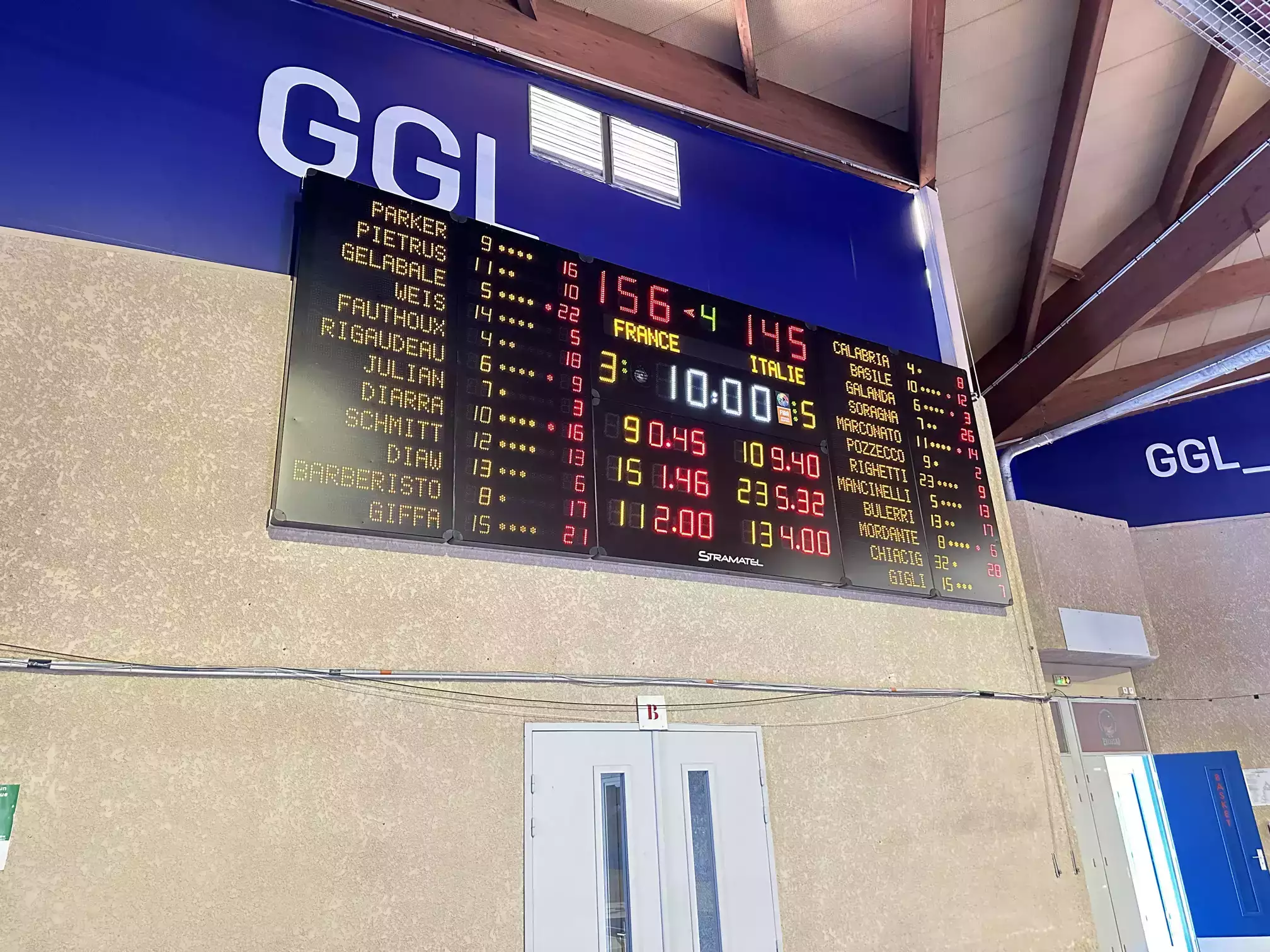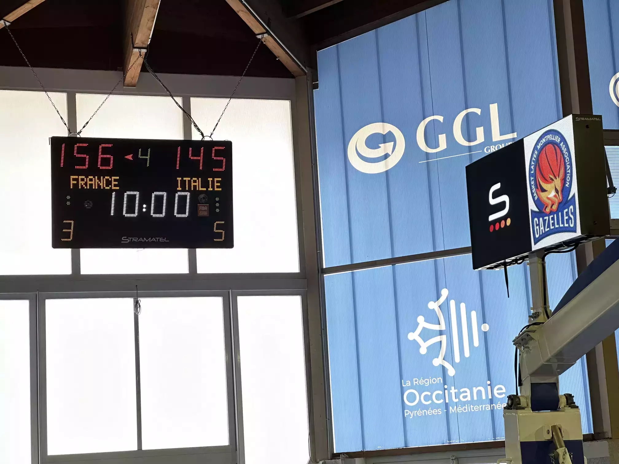 Le Palais des Sports de Lattes s’est doté d’une gamme complète d’afficheurs de score LED Stramatel, offrant une expérience visuelle incomparable pour les matchs de basket des Gazelles de Lattes en LFB (Ligue Féminine de Basketball). Ces tableaux de score dernier cri révolutionnent le scoring vidéo et l’affichage d’informations pendant les rencontres sportives.