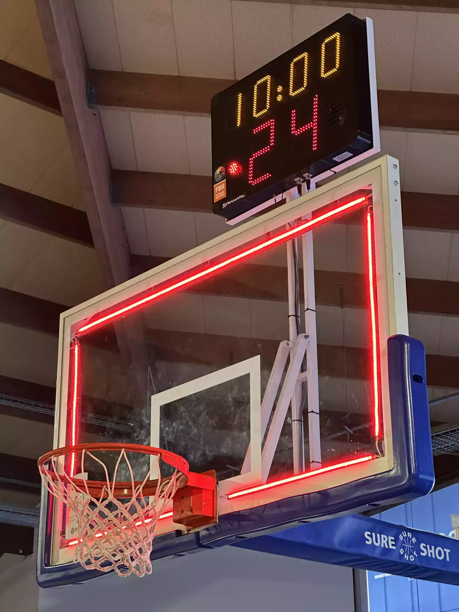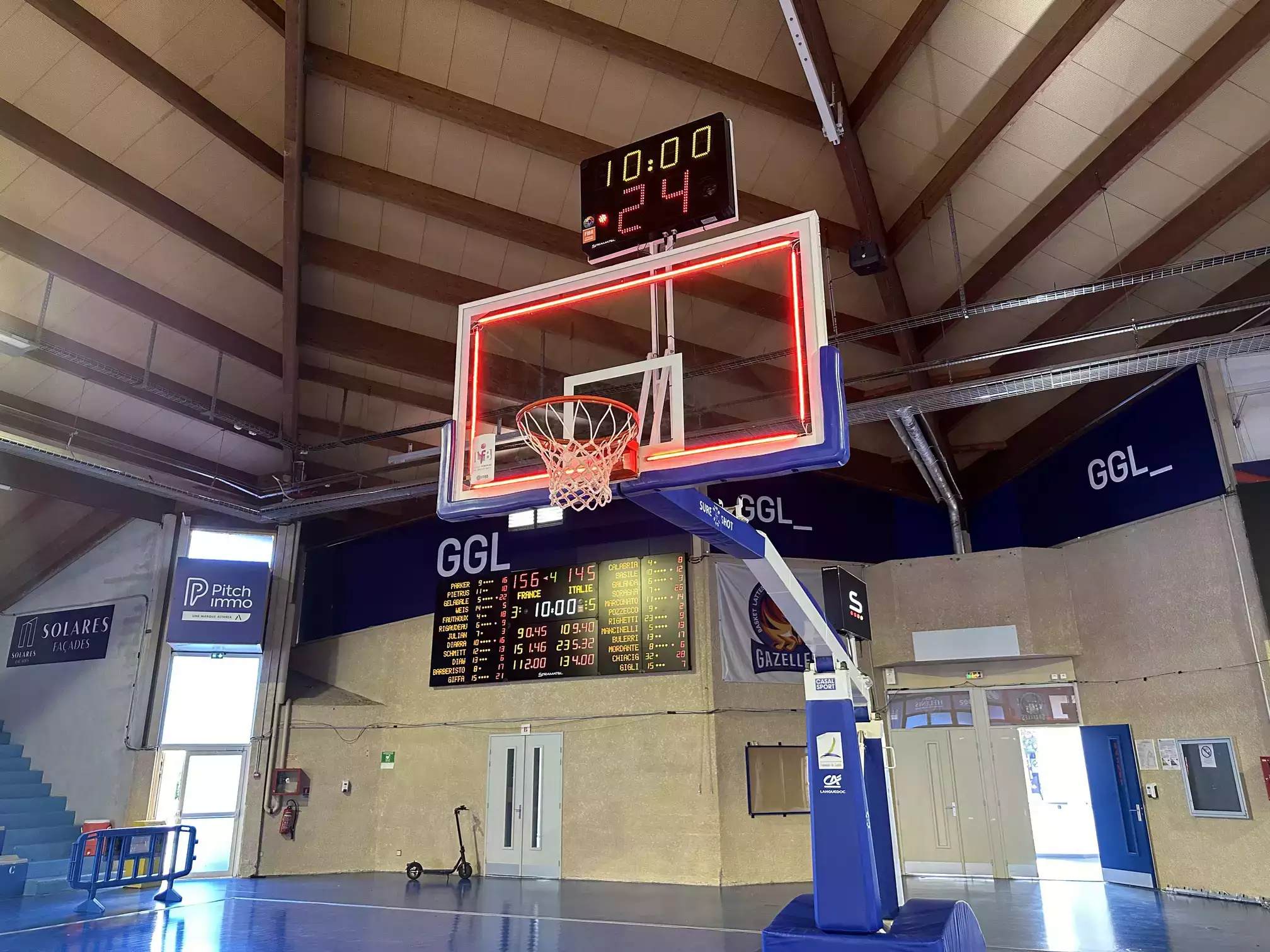 Les afficheurs de score TSP 24 secondes sont des éléments indispensables sur le terrain, notamment au niveau professionnel. Fixés sur les deux buts de basket, ces panneaux LED informent les joueuses sur le parquet du temps de possession restant. Pour les Gazelles de Lattes, cette technologie assure une maîtrise parfaite des temps d’attaque, essentielle pour rester compétitives au plus haut niveau.