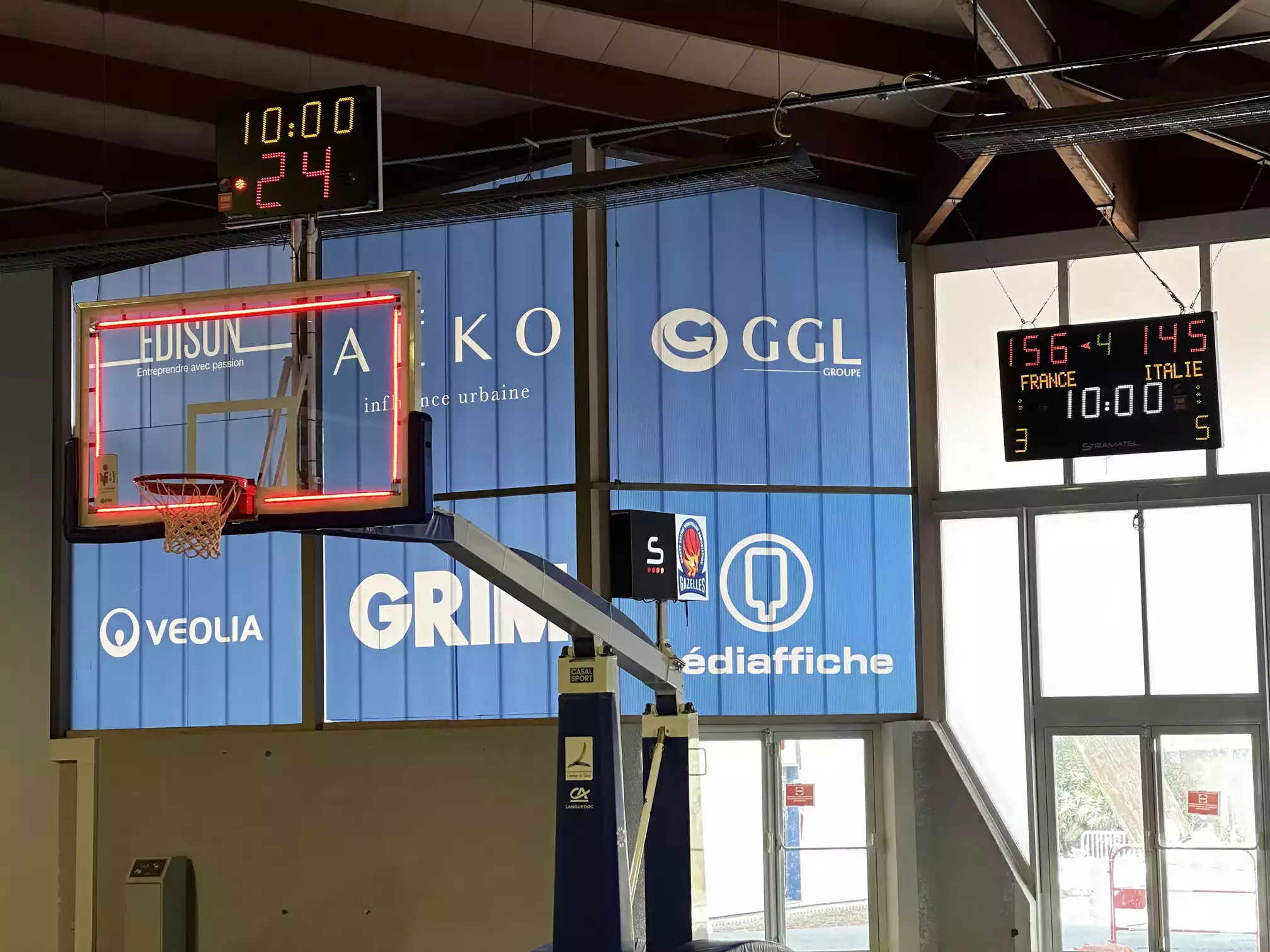 Les installateurs Stramatel ont équipé le club d’un ensemble complet d’afficheurs LED, garantissant une visibilité optimale des informations de match pour les joueurs, les arbitres et les spectateurs. Ce matériel professionnel d’affichage de score répond aux exigences élevées de la LFB.