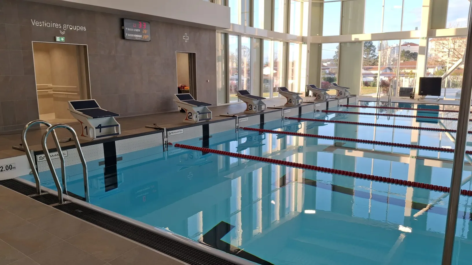 La confiance de la ville d’Anglet ne date pas d’hier. Ce nouveau système de chronométrage vient compléter une infrastructure déjà équipée par nos soins. Les entrées et les vestiaires de la piscine bénéficient déjà d’horloges LED Stramatel, reconnues pour leur lisibilité optimale et leur synchronisation parfaite.
