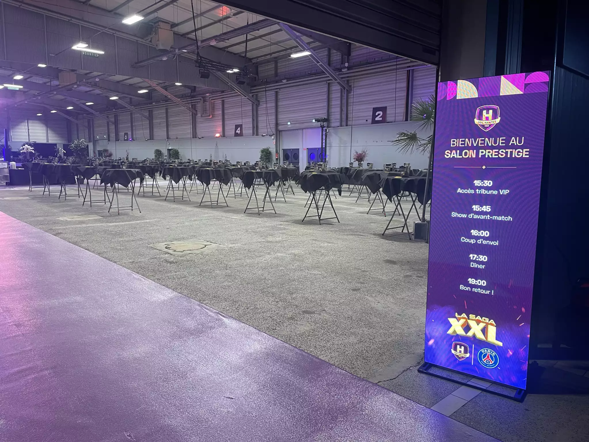 - Totems vidéo VIP : Installés dans les espaces privilégiés, ces écrans diffusent des contenus exclusifs, rehaussant l’expérience des invités de marque.