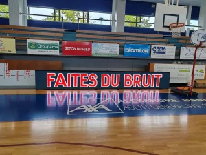 Au-delà de l’affichage traditionnel, le gymnase de Geispolsheim bénéficie désormais de 6 mètres linéaires de tour de terrain vidéo LED. Cette technologie d’affichage dynamique transforme l’ambiance des rencontres sportives.