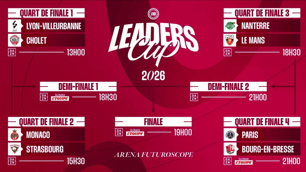 La Leaders Cup 2026 se tiendra du 20 au 22 février à l’Arena du Futuroscope, réunissant les huit meilleures équipes de la mi-saison de Betclic Élite. Pour cet événement majeur, nous assurons l’affichage des scores et la diffusion vidéo pour les 5 000 spectateurs attendus.
