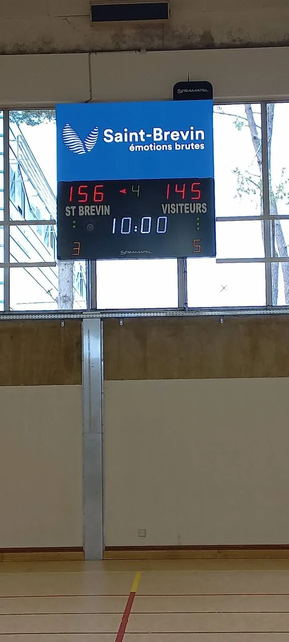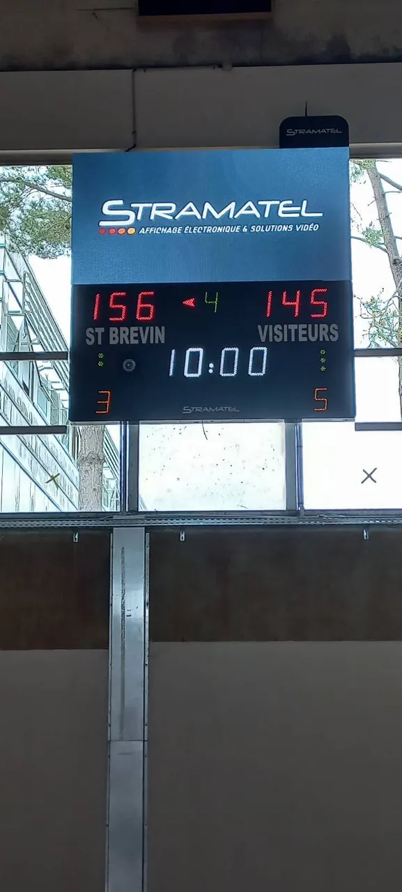 Pour équiper le gymnase municipal, les équipes techniques de Stramatel ont installé le modèle 452 MD 7000. Cet afficheur de score électronique est la référence pour les clubs de basket-ball exigeants.