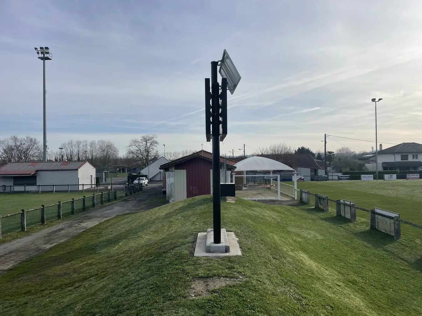 L’équipe d’installateurs de Stramatel a mis en place deux afficheurs FRB Solaire disposés dos à dos sur les terrains du stade d’Aureilhan. Ce choix technologique présente plusieurs avantages :